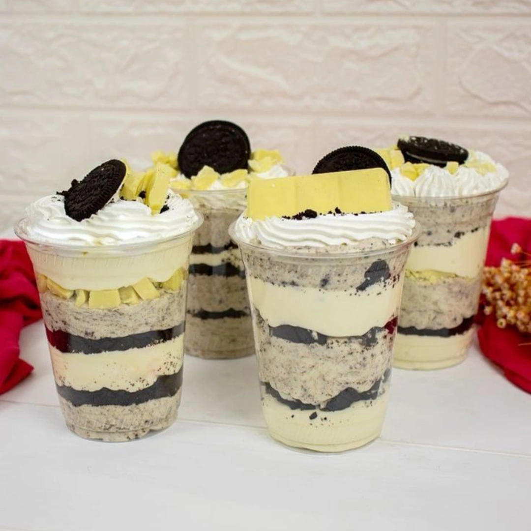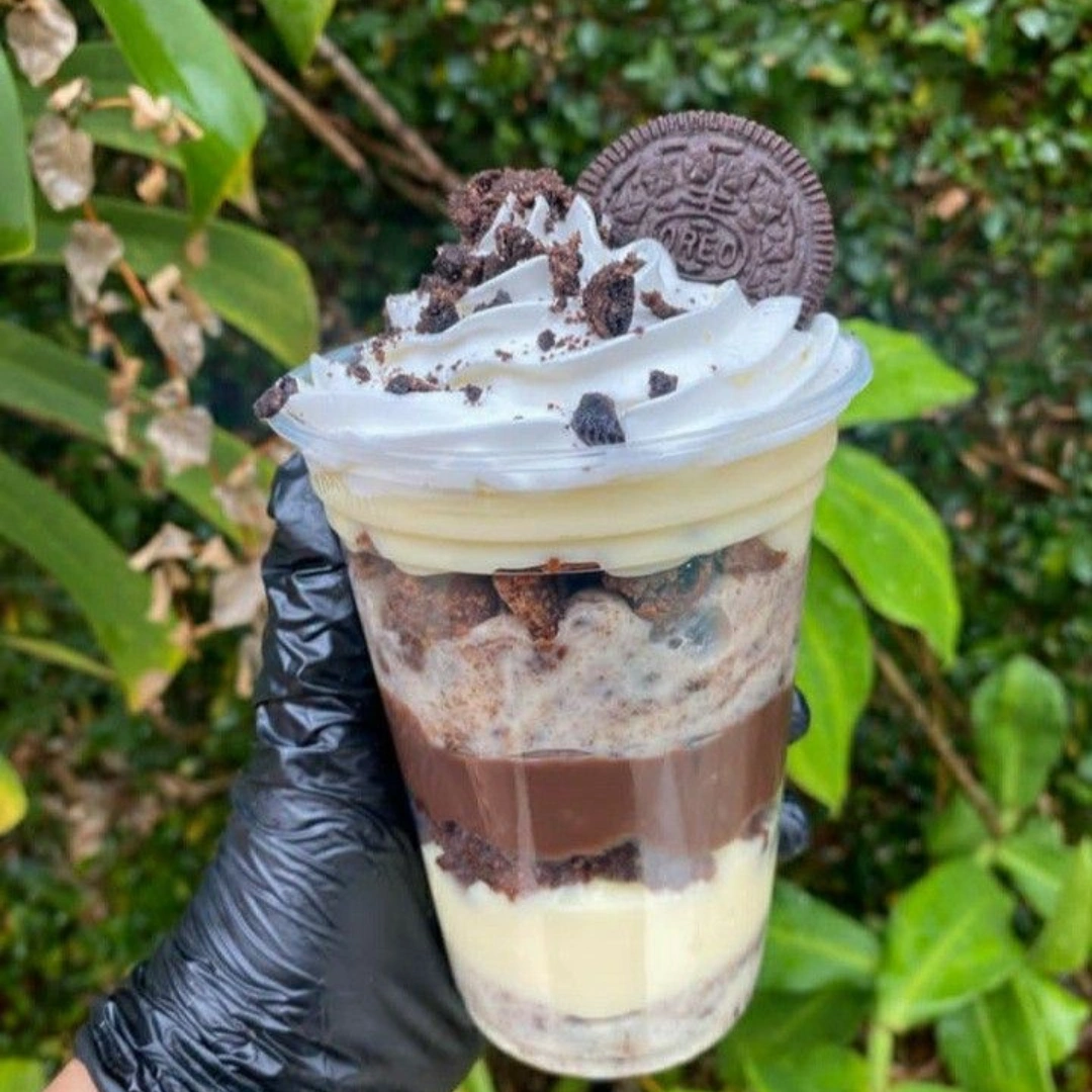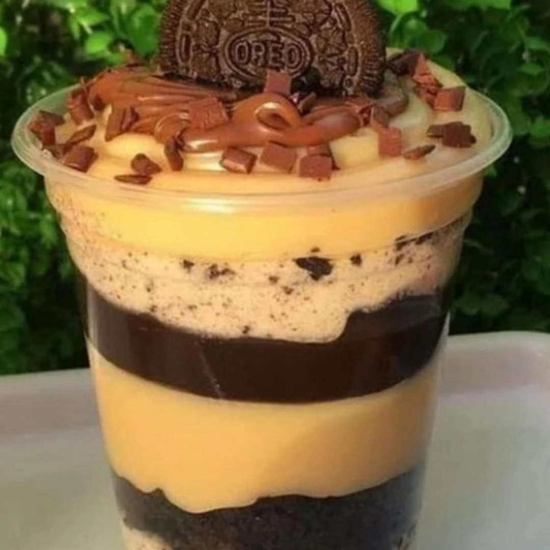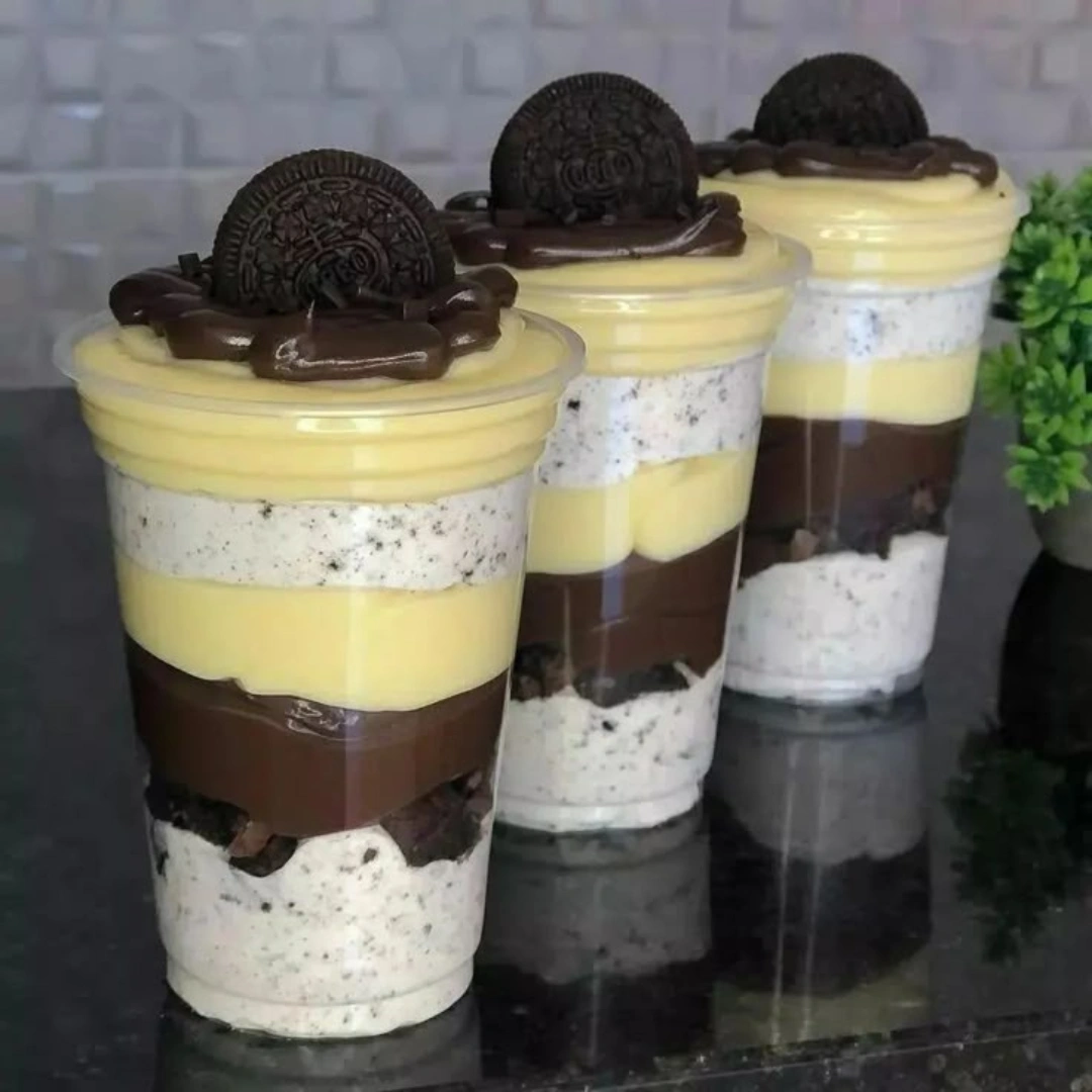O Copo da Felicidade Oreo é a união perfeita entre creme branco suave, pedaços generosos de Oreo e camadas de bolo ou biscoito que deixam tudo ainda mais gostoso.