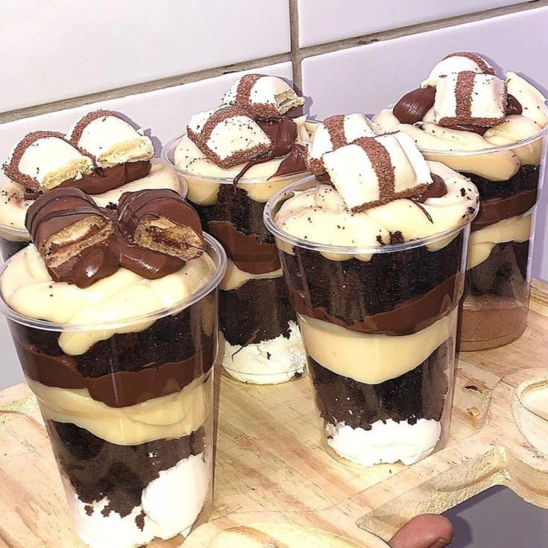 O Copo da Felicidade Kinder Bueno reúne o sabor inconfundível do chocolate Kinder em camadas generosas de creme aveludado, pedaços crocantes e bolo macio.